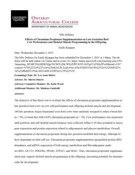 Thesis Title:    Effects of Chromium Propionate Supplementation on Late Gestation Beef Cow Performance and Skeletal Muscle Programming in the Offspring   Abstract: